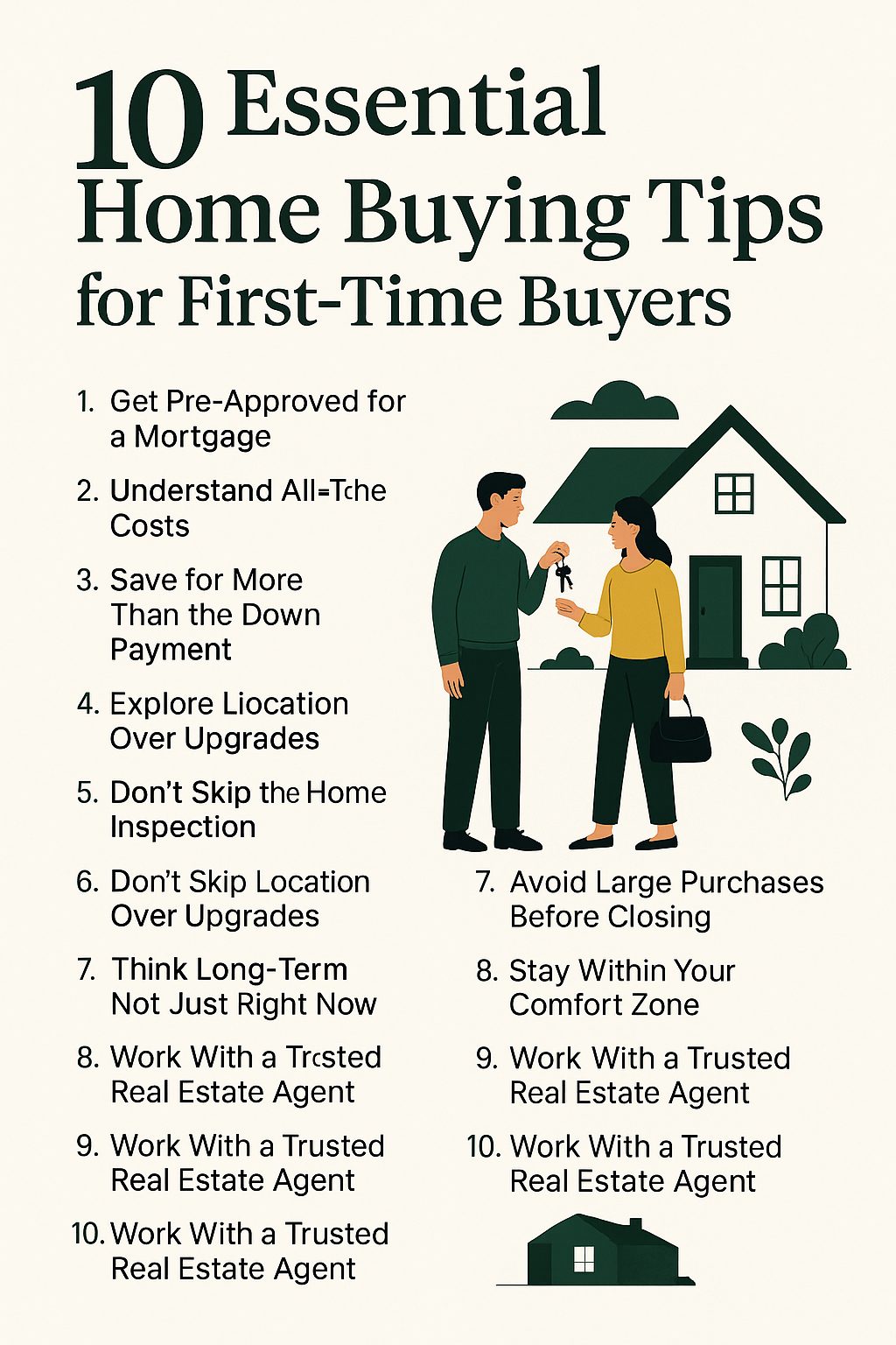Buying your first home is one of the most exciting milestones in life—but it can also feel overwhelming if you don’t know where to start. As a real estate agent, I’ve guided many first-time buyers through this journey, and I’ve put together ten practical tips to help you feel confident and prepared as you take this big step.